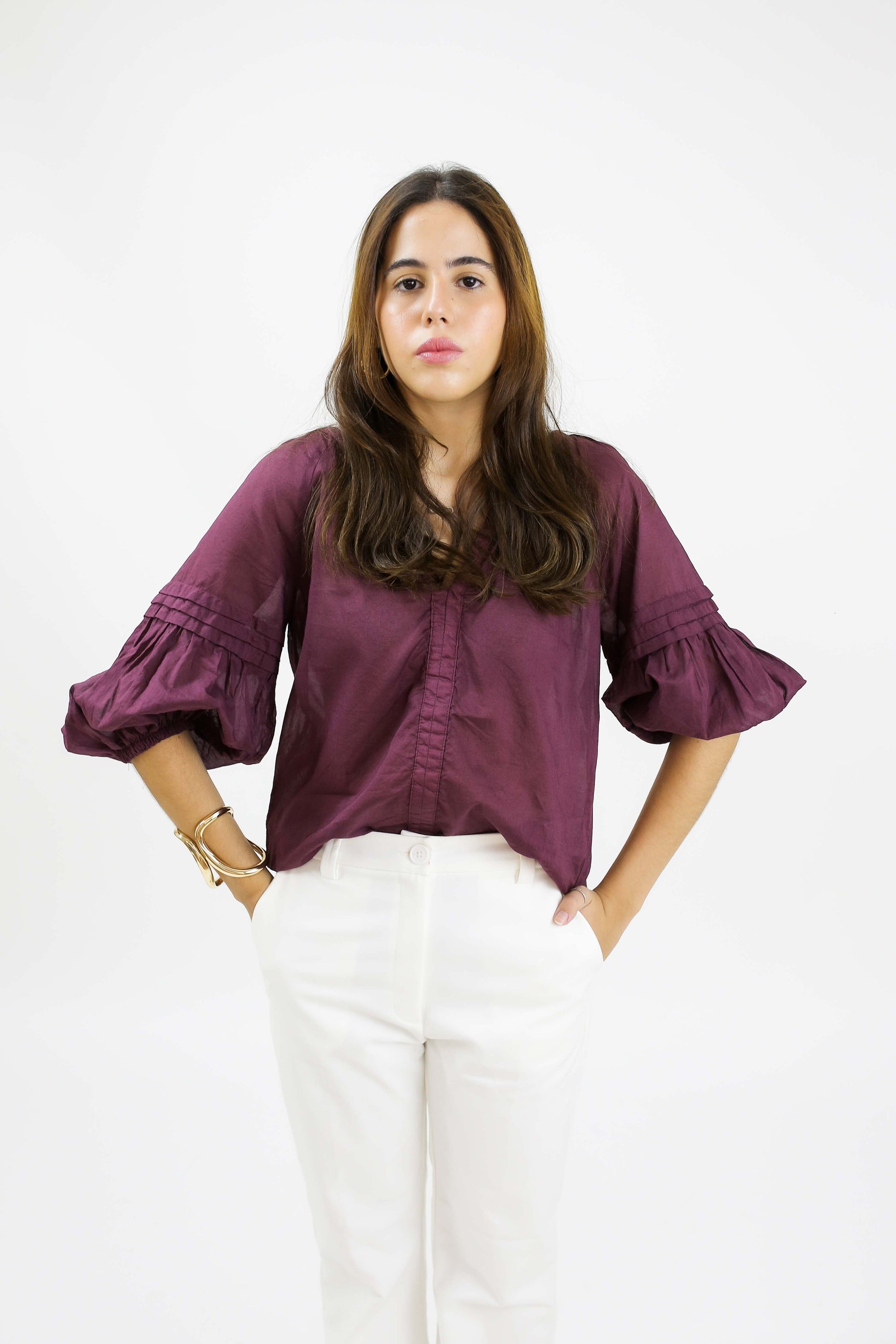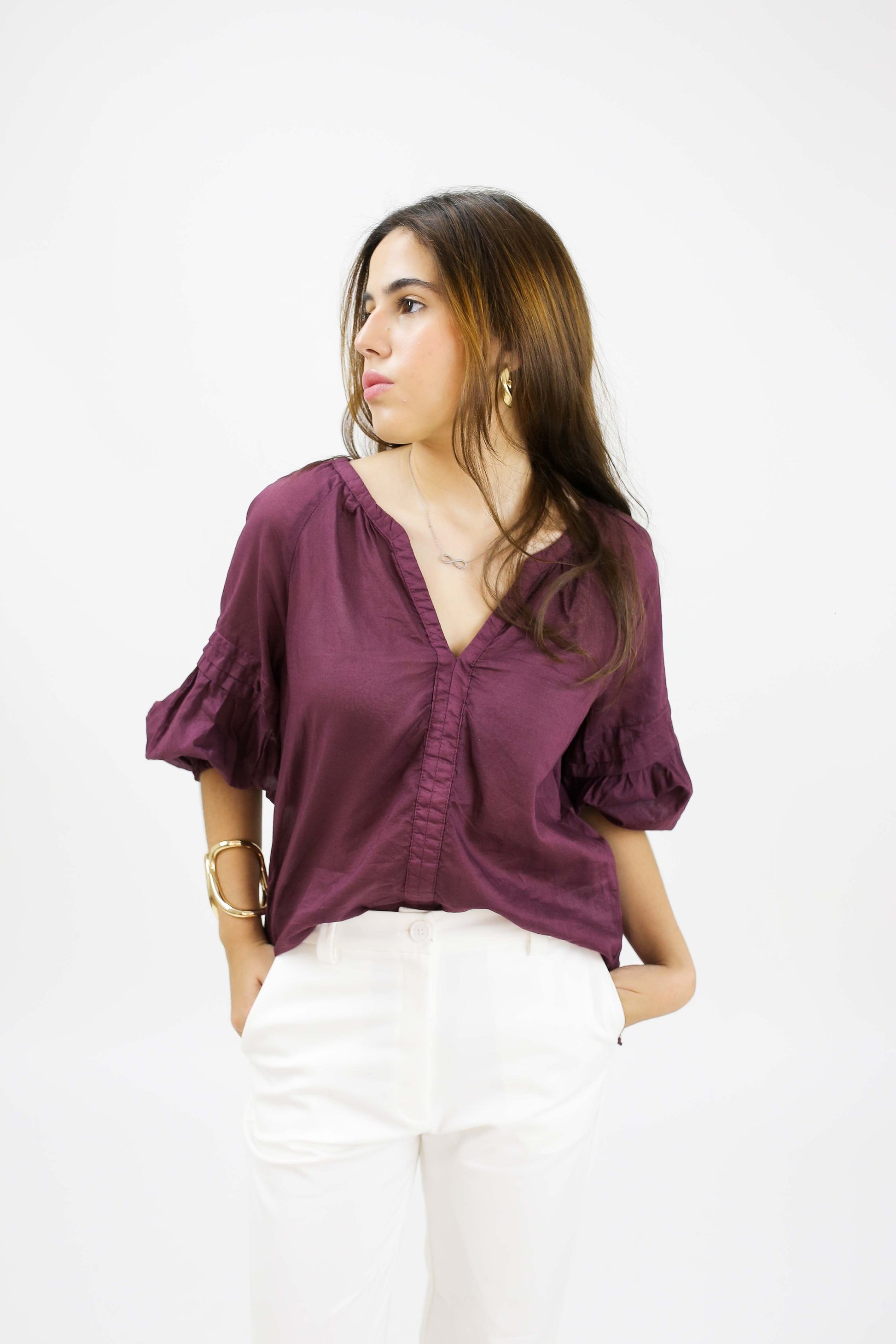 BLUSA MANGA 3/4 COM DETALHE NERVURAS
